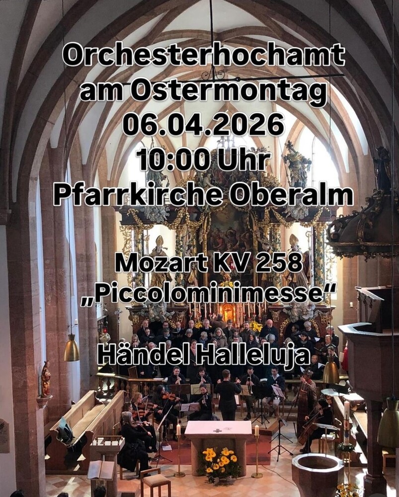 Am Ostermontag wird es festlich, wenn wir im Pfarrverband gemeinsam in Oberalm feiern, mit den Emmausjüngern und ihren Fragen. Ein fulminantes Orchesterhochamt und dem Kirchenchor St. Stephanus erwartet uns: Piccolinomesse von W. A. Mozart und Halleluja von G. F. Händel. Alles unter der bewährten Leitung von Christian Göhringer.